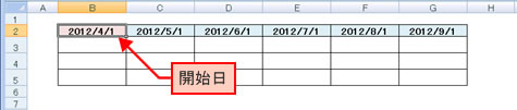 開始日には、起算日となる日付を指定します。起算日となる日付が入力されているセルを指定する