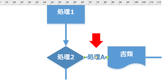 コネクタを選択して文字列の入力を開始して確定すると、コネクタに重なるようにテキストが表示されます。