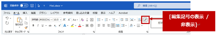 [編集記号の表示 / 非表示] はオンにしておいたほうが、改ページを挿入した位置を確認しやすいです。