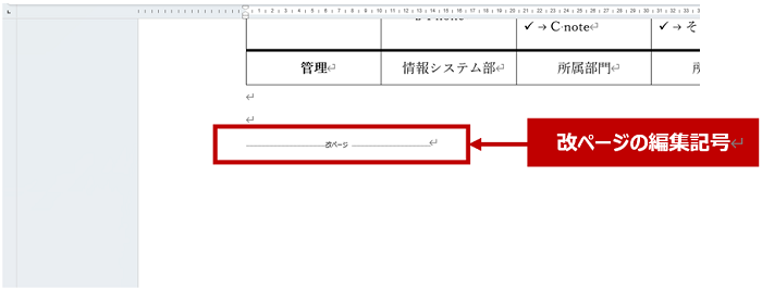 ③改ページを挿入した位置の後ろの内容が次のページから開始されます。
