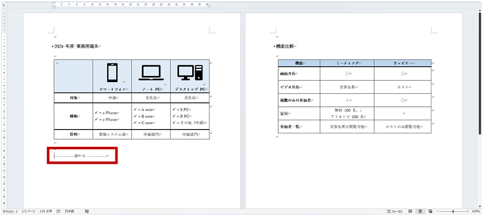 「ここからは新しいページに表示したい」というようなときには、改ページを挿入しましょう。