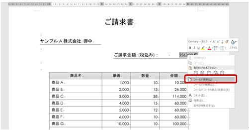 フィールドの位置にカーソルをおいて [F9] キーを押しても更新されますし、印刷プレビューや印刷を実行したときにも更新されます。