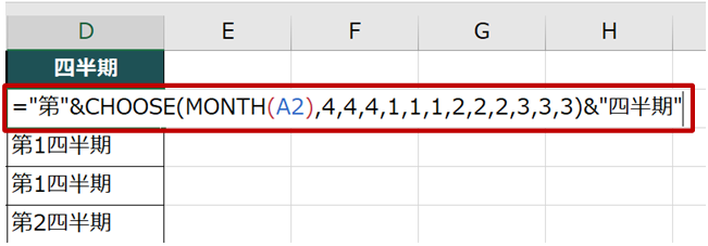 CHOOSE 関数を使って四半期を求める