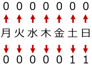 数式を作りながら考えるのではなく、下表を見ながら、自分がお休みにしたいのは何曜日だ!というのを決めておきましょう。