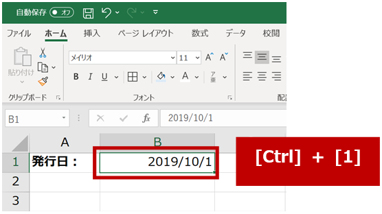 今回は、西暦も入力しています。西暦を入れないと [m”月”d”日”] ([ユーザー定義]) という表示形式が適用されます。どうせ変えてしまうから、どちらでもいいけれど、Excel が日付であると認識できるように入力してください。いわゆるシリアル値。