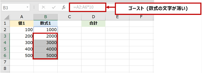 冒頭の SUM 関数の数式に記述されていた「B2#」は、「セル B2 (動的配列数式) とゴースト全部」ということです。