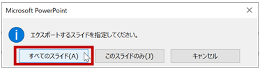 表示されたメッセージで、すべてのスライドを出力するのか選択しているスライドだけを出力するのかを選択します。
