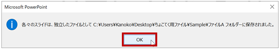 [すべてのスライド] を選択した場合は図のメッセージが表示されます。[OK] をクリックします。