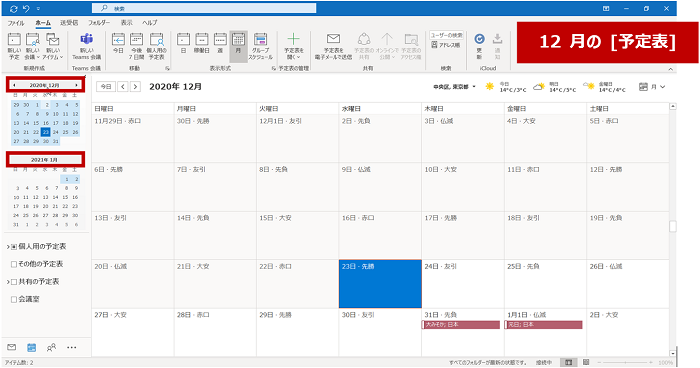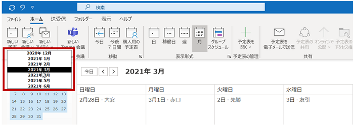 一覧で [予定表] に表示したい月をクリックすると、表示が切り替わります。