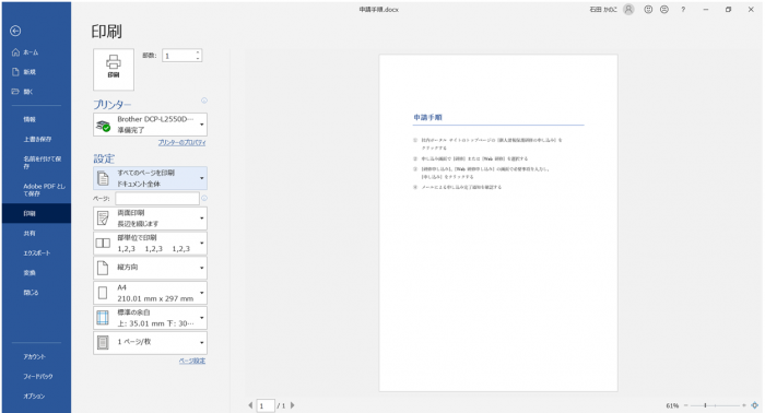 - 印刷プレビューから変更履歴の表示が消え、いまプレビューに表示されている状態で印刷されます。