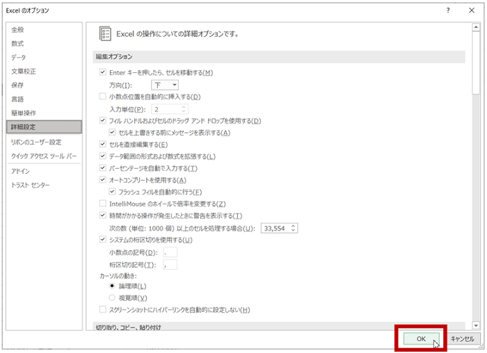 [Excel のオプション] ダイアログ ボックスの [OK] をクリックします。