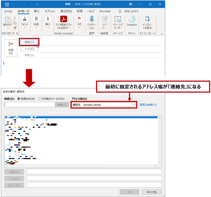 次回以降、[名前の選択] ダイアログ ボックスを表示したときには、「連絡先」が最初に指定されます。