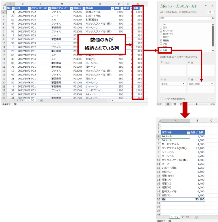 既定の動きをうまく使って効率よくピボットテーブルで集計をしたいのなら、データ ソースの列の値の種類は統一しておくべきです。