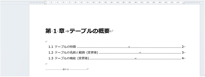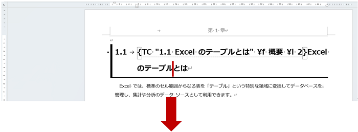 - 章扉に作成している目次を更新すると、段落番号が含まれていることを確認できます。