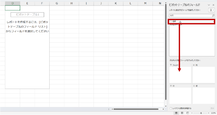 - ピボットテーブルの [フィルター] エリアにフィールドを作成します。