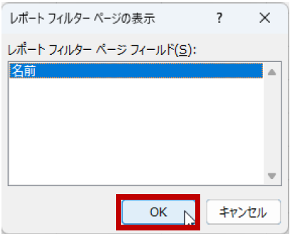 - [レポート フィルター ページの表示] ダイアログ ボックスでフィールドを選択して [OK] をクリックします。