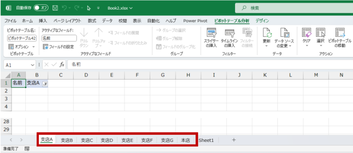- (結果的に) 一覧に用意した名前を設定した複数のワークシートが作成されます。