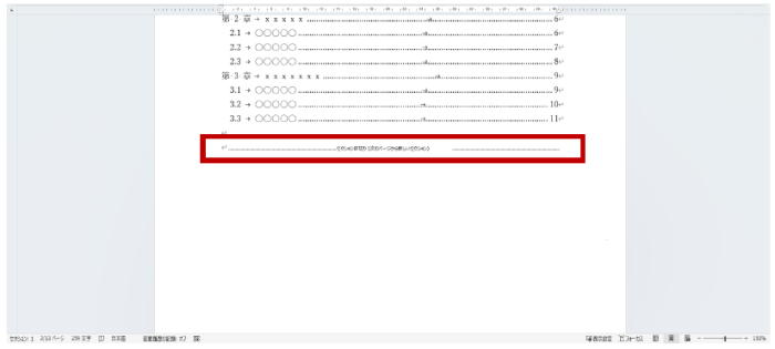 Word 文書の中は、「ページ」以外に「セクション」という単位で区切ることができます。