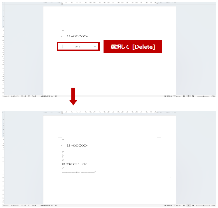 - 2 ページの末尾に挿入されている改ページを削除します。