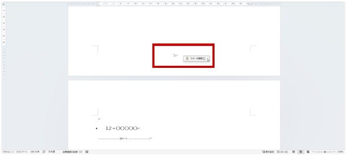フッターの中央にページ番号を挿入して進めます。