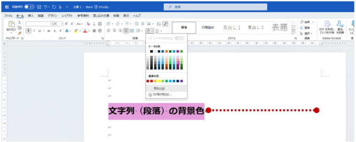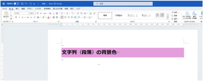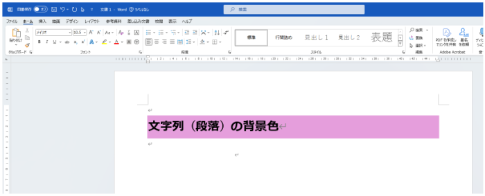 見出しのように強調したい文字列があって、塗りつぶしを使って背景色をつけると文字列があるところだけに色が適用されます。かといって文字列の後ろにスペースを追加して調整するのもなんだかスマートじゃない気がしますね。