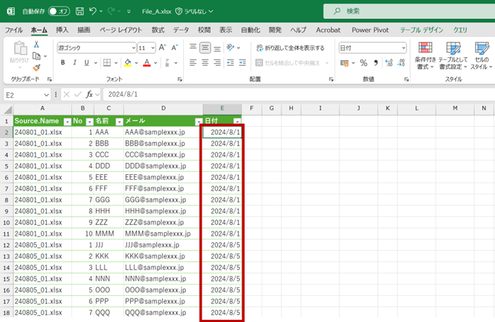 今回は [Files] フォルダーに「yymmdd_管理番号.xlsx」というルールで保存されている複数のファイルがあるとして、このフォルダーに接続したクエリ (テーブル) で処理してみます。