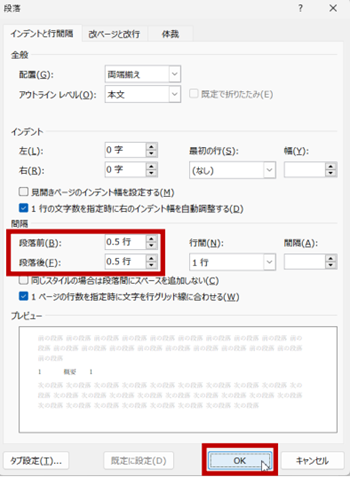 5. 書式を変更 (段落前の間隔を追) して [OK] をクリックします。