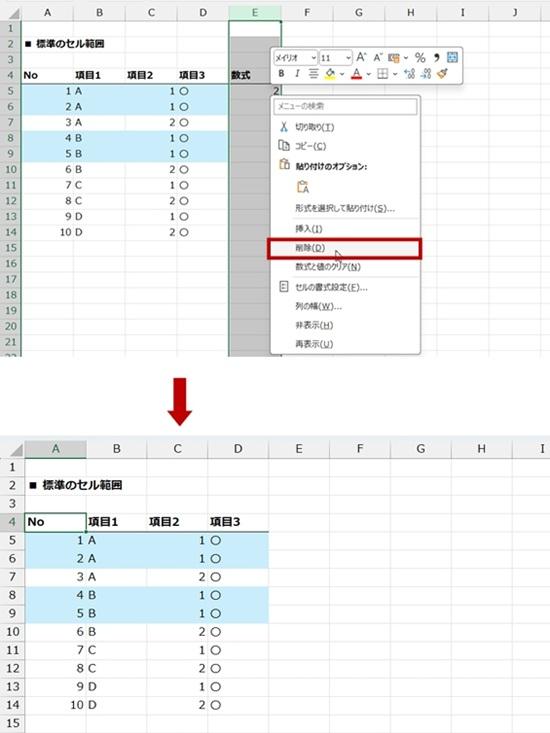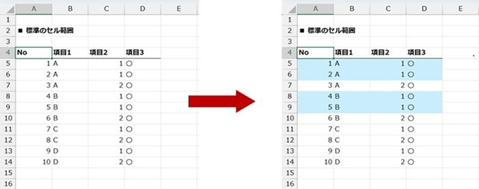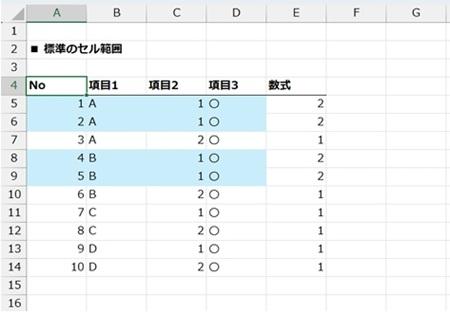 今回は対象の表は標準のセル範囲 (テーブルではない) です。