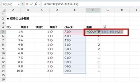 編集前 =COUNTIF($E$5:$E$14 , E5)