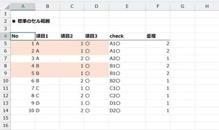 COUNTIF 関数を使って同じ値 (同じ組み合わせ) が 1 つなのか、2 つ以上なのかを確認できます。