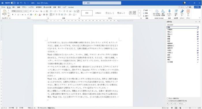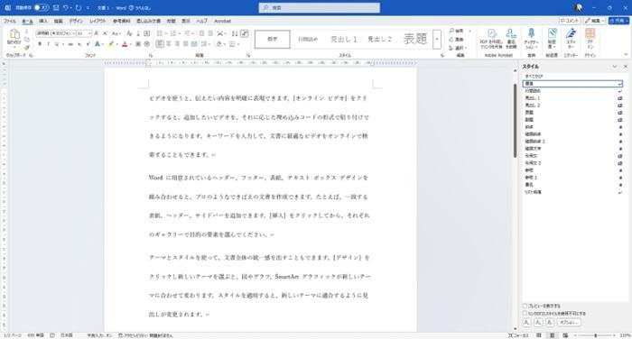 新規文書に文字列を入力して複数の段落で表示しているイメージがこちら↓。従来に比べてだいぶ行間が広いです。