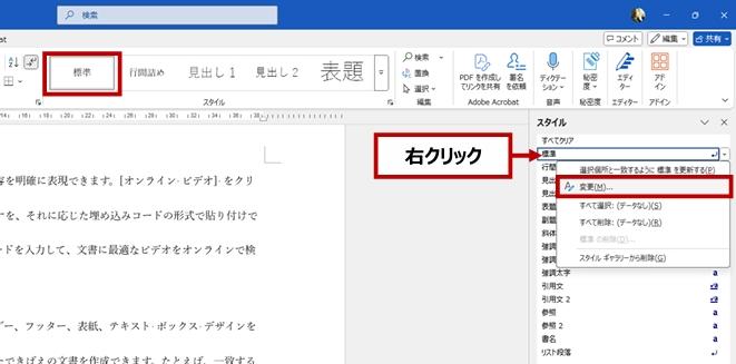 ([スタイル] ギャラリーや [スタイル] ウィンドウの [標準] を右クリックして [変更] をクリック)