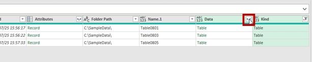 11.テーブル オブジェクトだけが抽出されます。 [Data] 列の展開ボタンをクリックします。