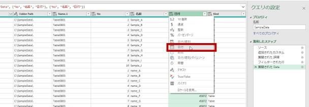 14. (必要なら) [日付] 列のデータ型を [日付] に変更します。