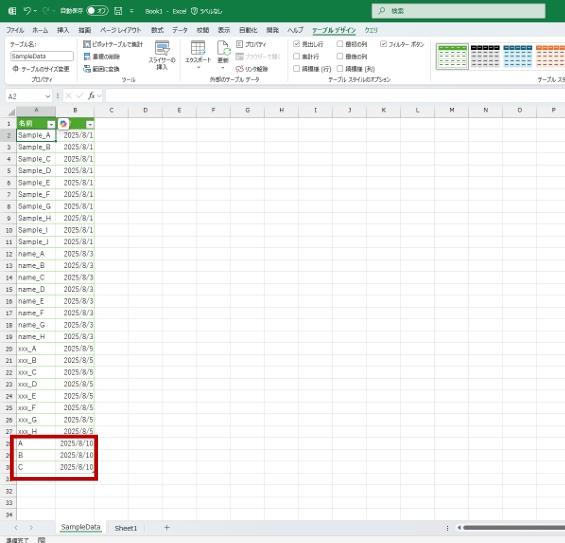 ここまでの手順で指定したフォルダーにファイルを追加します。 ファイルに含まれるテーブルは、ほかのテーブルと列構造が同じで、テーブル名は「Table0810」です。