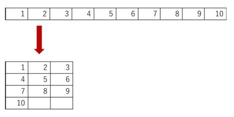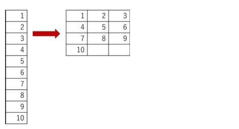 =WRAPROWS (ベクトル , 各行の最大列数 , 空白セルがあった場合に設定する値)