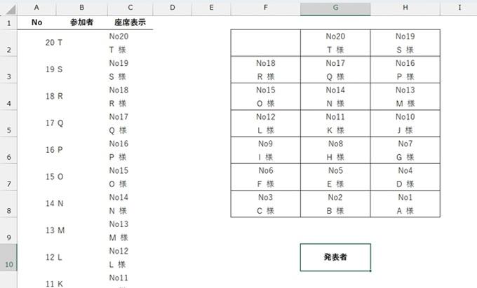 ここでは、図 C のように、発表者側からみたときの座席表のイメージ (A が右下) で結果が表示されるように修正する例をご紹 介します。