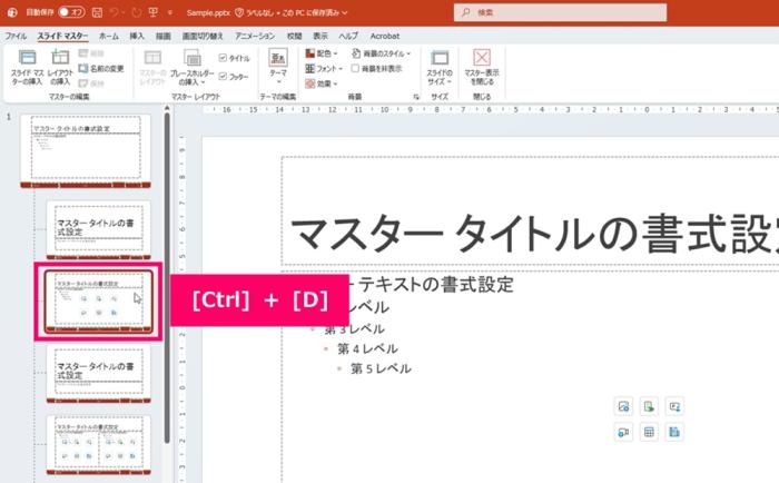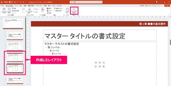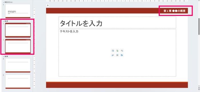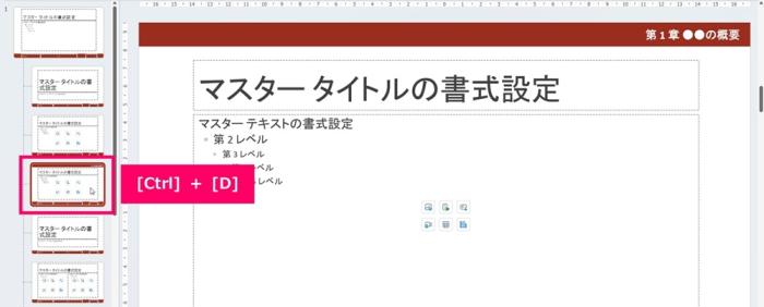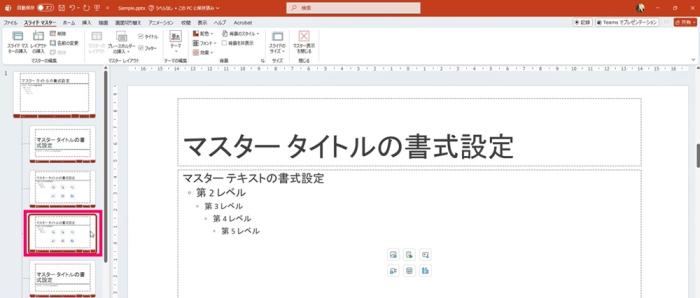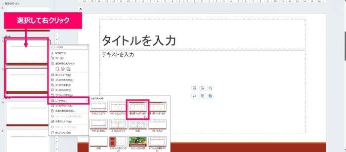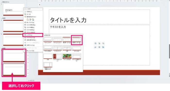 5. このあと追加されていくスライドにも適切なレイアウトを適用します。