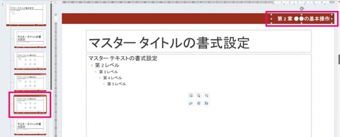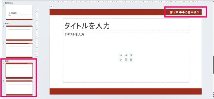 3. ここでは、第2章用のレイアウトも用意したので、「第2章 ●●の基本操作」と表示される [第2章 ヘッダーあり] レイアウトも適用します。