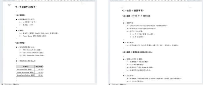 こんな感じで、ベタ打ちで特に書式も設定していなかった文書が、ある程度みやすく、また、情報が増えて段落が追加されたりしても番号を振りなおせるページに整います。