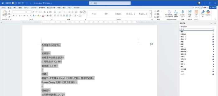 6. 新しいスタイルが作成され、選択していた段落 (文書全体) に適用されます。