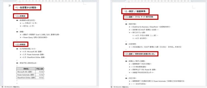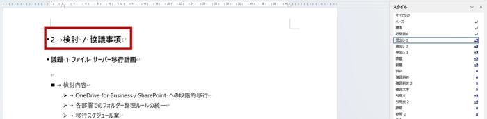 こんな感じで↓話題や議題の区切りの部分となる見出しを設定します。