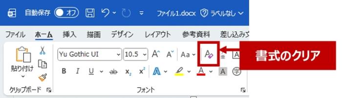 ちなみに、うまくいかなかったら焦らずに一旦すべての書式をクリアして、再度設定しましょう。 段落を選択して [書式のクリア] をクリックします。書式をクリアしたら、最初に作った [ベース] のスタイルを適用すれば、ほかの段落とフォントの種類などを統一できます。