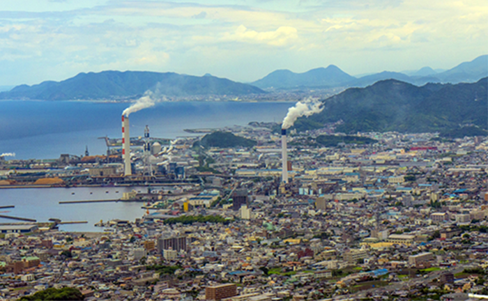 製紙・紙加工業が盛んで、白い煙をはく大きな煙突が特徴的です。大王製紙株式会社やユニ・チャーム株式会社などの上場企業の本社や本部があり、日本屈指の生産量を誇ります。ちなみにあの白い煙は、ほぼ水蒸気なんだそうです。