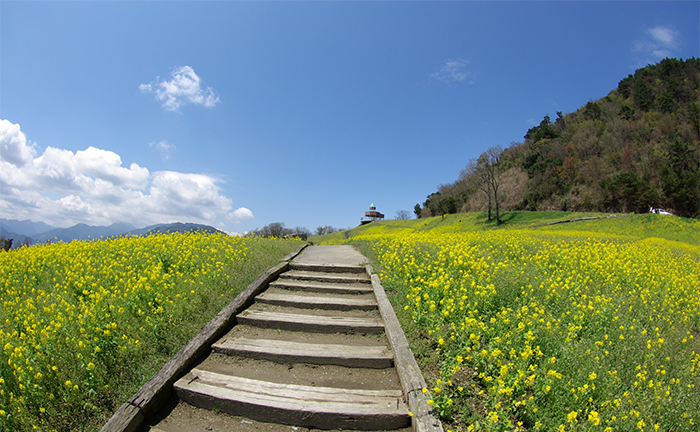 海と山が近くにある四国中央市は、自然にあふれています。金砂町にある「翠波高原」は標高760m付近に広がる高原で、広い敷地に春は菜の花や山桜、ポピーが、秋には、コスモス、萩が咲き誇ります。