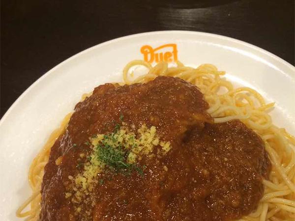 メニューを見ると、「デュエット風ミートソース以外は時間がかかるのでご了承ください」との注意書きもありました。そんな注意書きがなされるほど、ほとんどの人がこのミートソーススパゲティを注文するんですね。