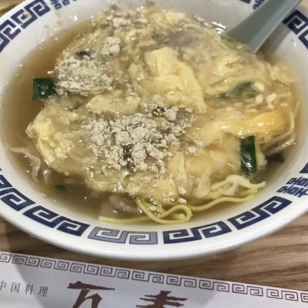 初めてみたときはコショウの多さにびっくりしますが、あんかけと麺とコショウがよく混ざり合うように底から何度も混ぜてあわせてから食べるので、そんなにコショウは気になりません。塩味なのであっさり食べられてしまいます。