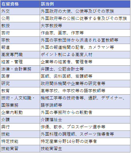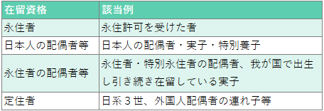 これらは「身分系資格」とも呼ばれ、職種や業種を問わず就労することができます。