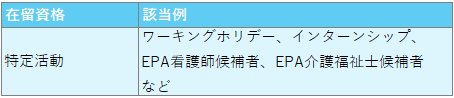 ①~③のいずれにも該当しない活動の受け皿として、「法務大臣が個々の外国人について特に指定する活動」を認める在留資格です。指定する活動により就労の可否が決まります。「在留資格」は法律で定められており、追加には法改正が必要です。