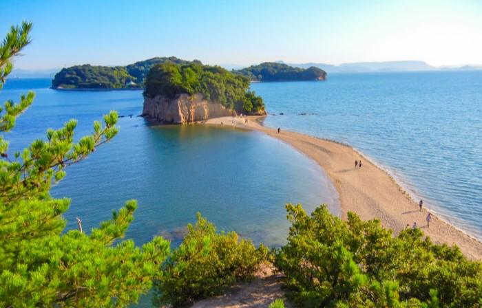 引き潮の時には中余島まで渡ることができます。「大切な人と手をつないで渡ると、願いが叶う」とも言われており、とてもロマンチックな場所です。